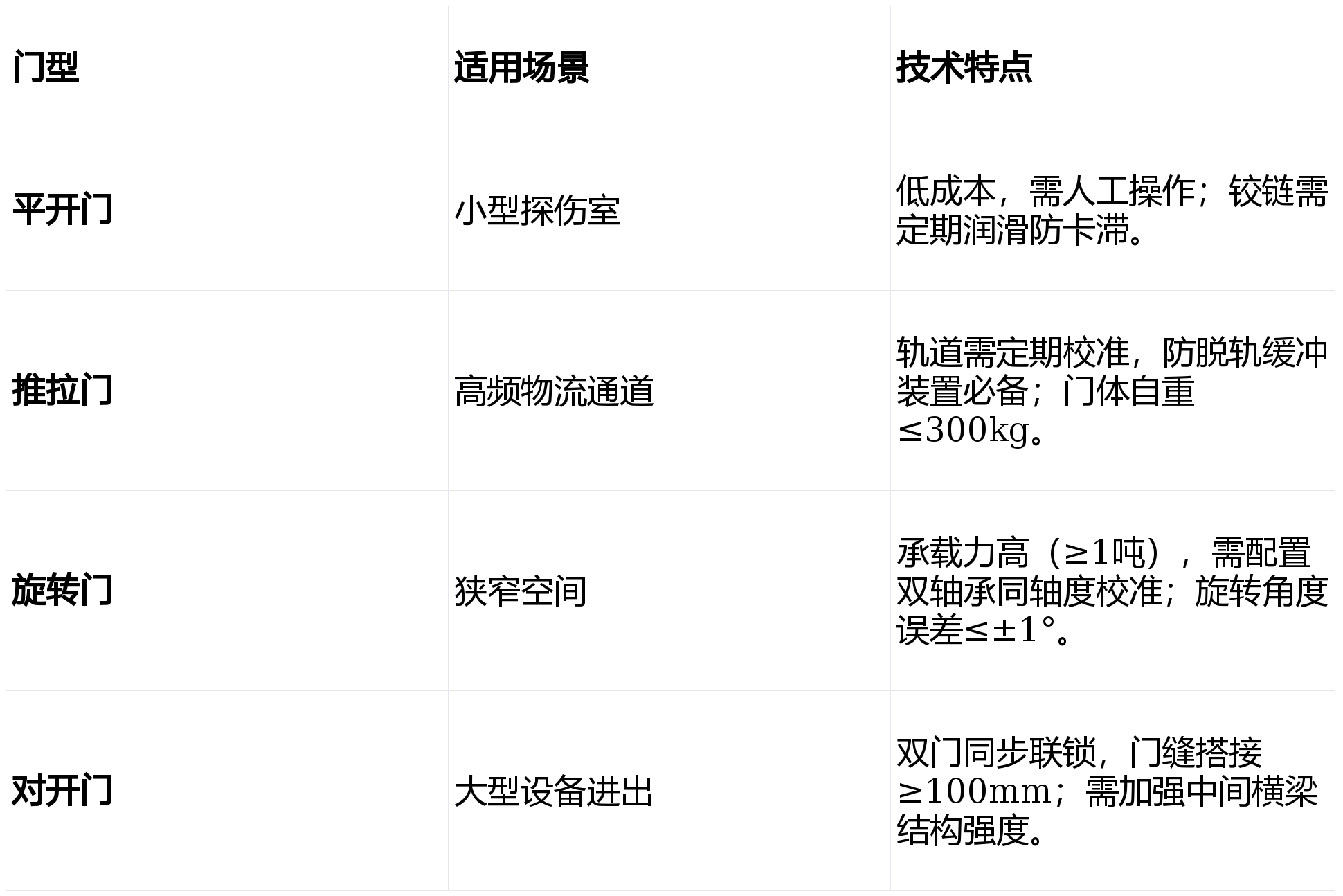 :铰链笔直度差错≤1.5/1000,门扇与门框空隙≤2mm,需装备配重块平衡重力。